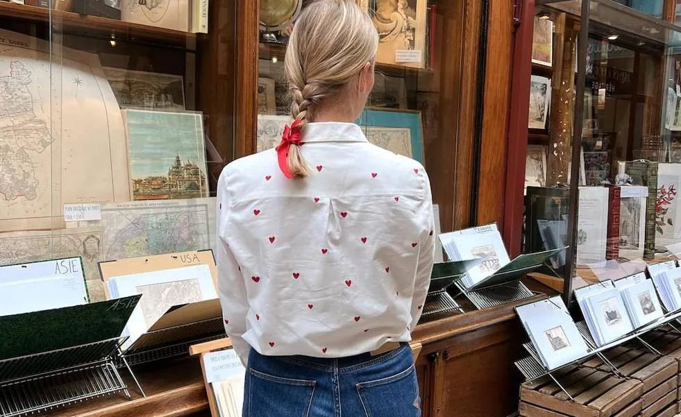 Son preciosas, rejuvecen el look y a las parisinas les encanta llevarlas con vaqueros, por eso estas camisas blancas estampadas son un básico de las francesas para vestir bien.