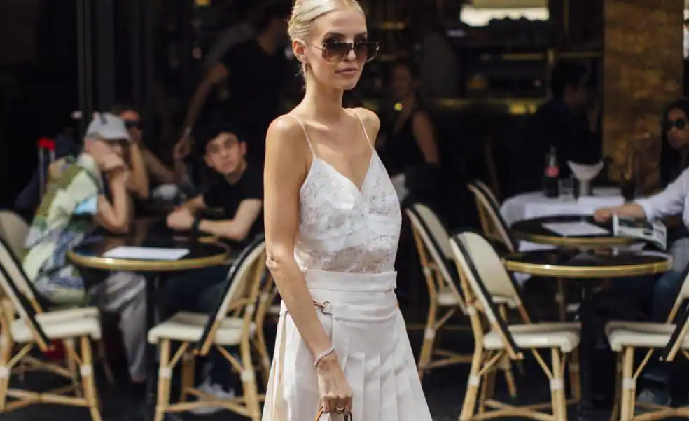 De vuelo, satinadas o vaqueras, la tendencia que va a desbancar a los vaqueros el street style son las faldas blancas elegantísimas.