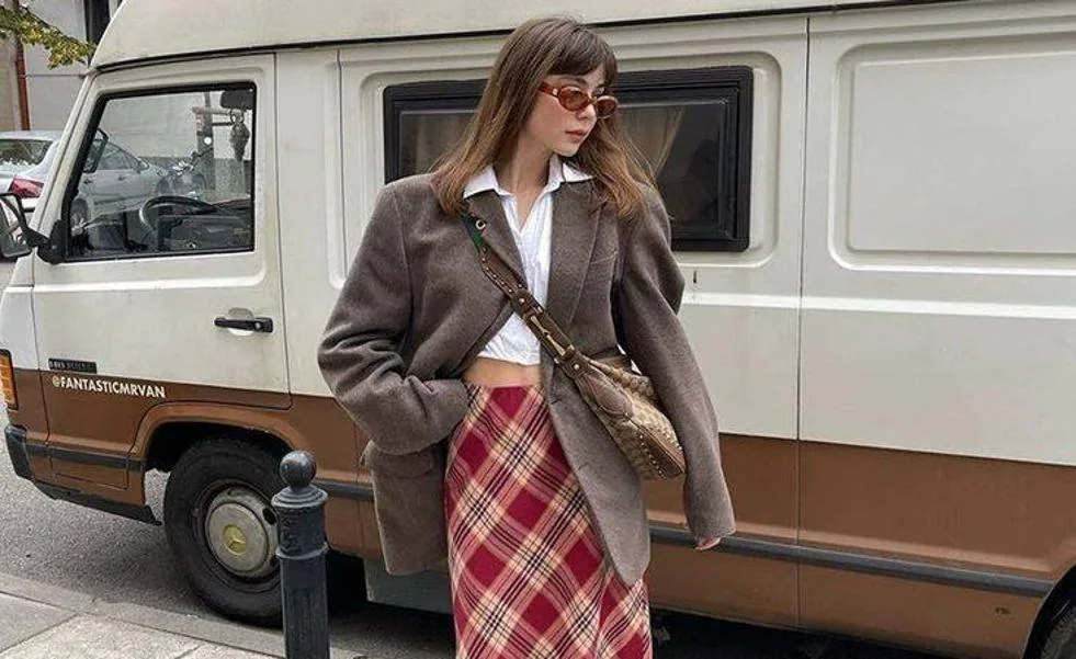 La nueva moda viral inspirada en los 90 que está causando furor es la falda con estampado de cuadros grunge.